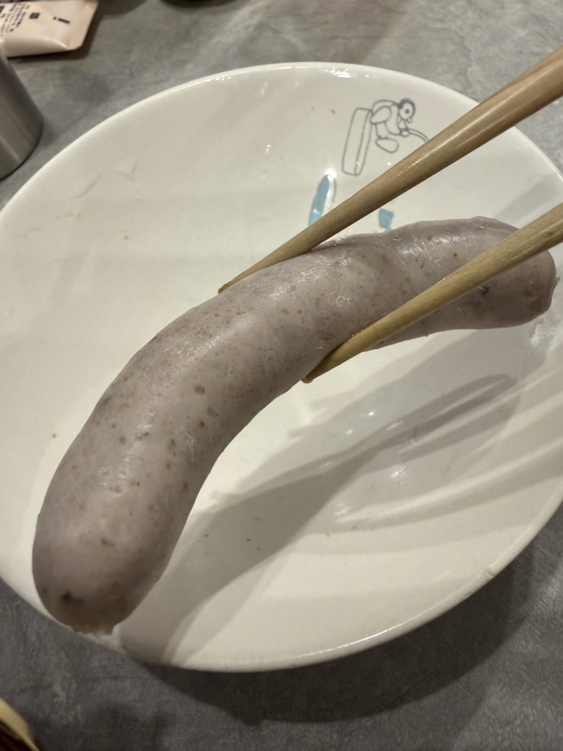 15分間湯に漬けておいたソーセージを味見🌭
