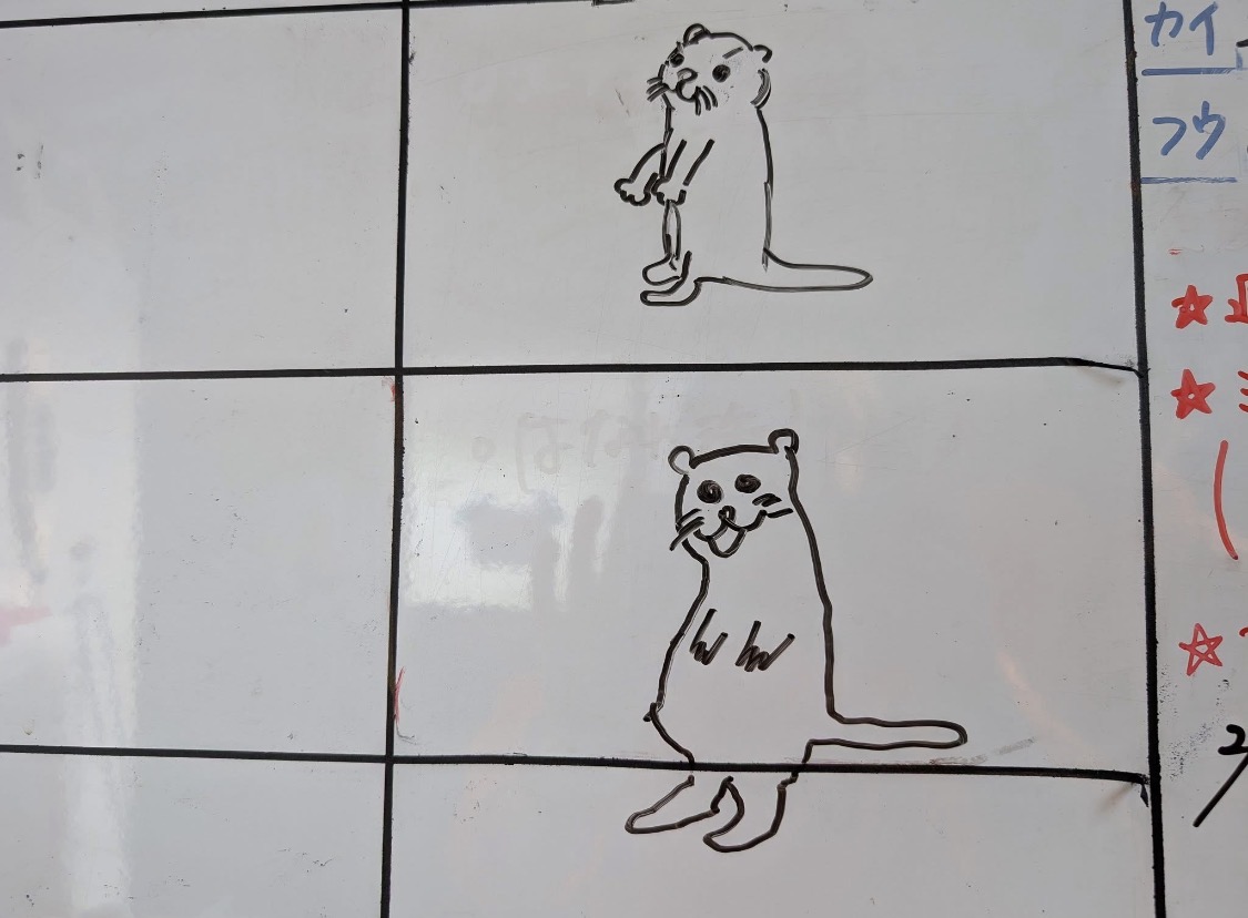 ある日のアシカ舎で真剣な顔で「教えてもらいたいんですが…」と言ってきたので何かと思ったら横向いているカワウソの描き方教えてください、でした。