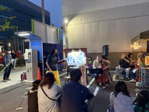 未分類 瑞穂通は…ほ祭 2026年4月12日 noko コメントする 新瑞橋からトボトボ歩いて… さとザクラが満開です🌸 おっ、発見❣️ 瑞穂区役所の前の駐車場でお祭り❣️ チェロの加藤先生がマイスマイスにて…チェロ演奏されるというので…🎶 パニプリというまーるいサクッとした入れ物に…豆入りのサルサみたいなものを入れます。 インドの屋台で売ってるものらしい。 台湾ビールと一緒に… 指示通りに(笑)… 一口でバクッ❣️ 私がよくお邪魔する豆花の豆花甘露さんも出店されてました🫘 豆花は残念ながら…売り切れ😭 オリジナル創作童話。 大盛況ですね❣️ お疲れ様❣️ いいね:いいね 読み込み中…