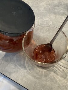 ホテルで購入してきた梅ケ島の紅茶チャイを煮出して、豆乳とラムを入れて…