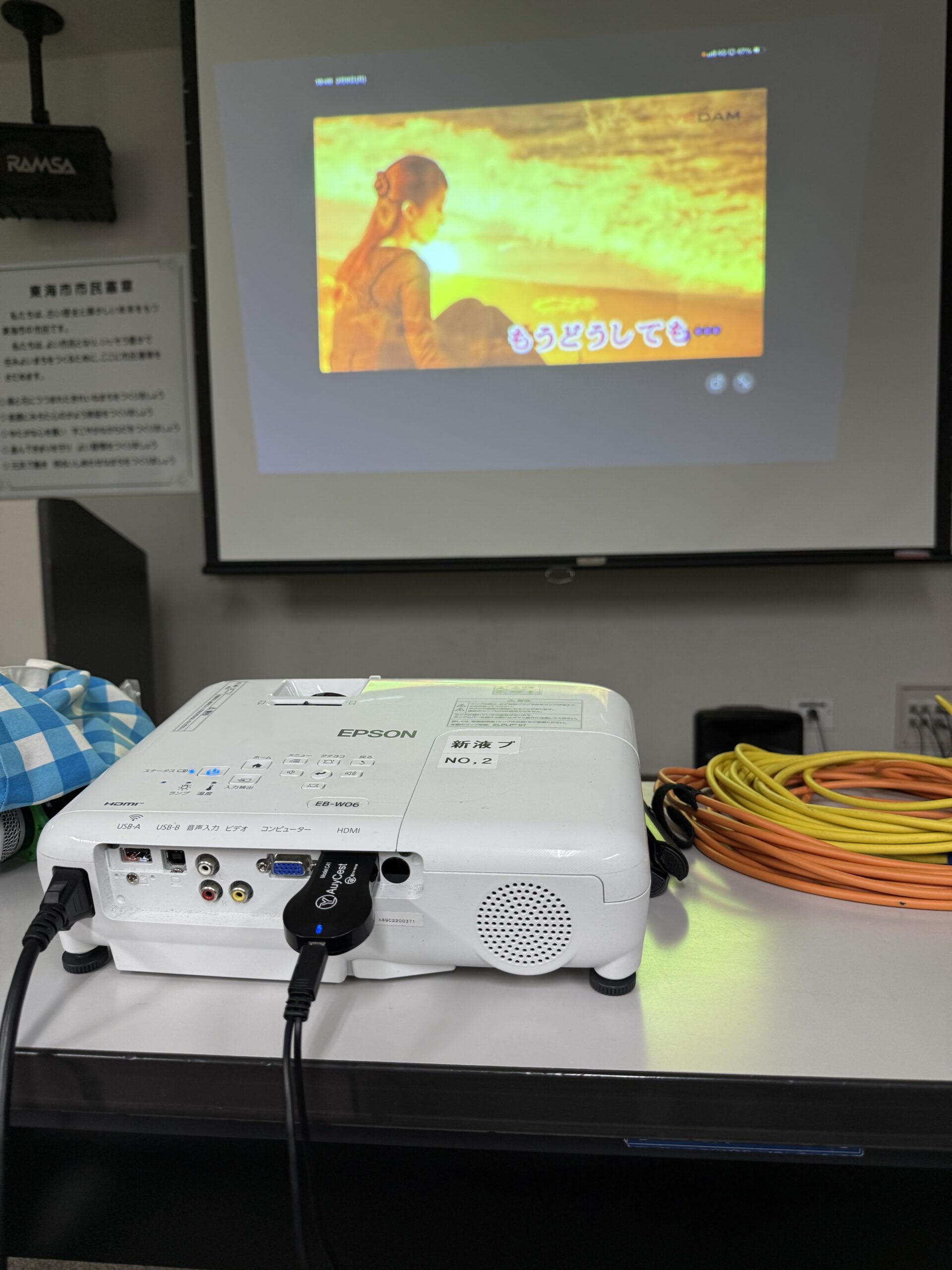 持参していたプロジェクターを使ってみる。